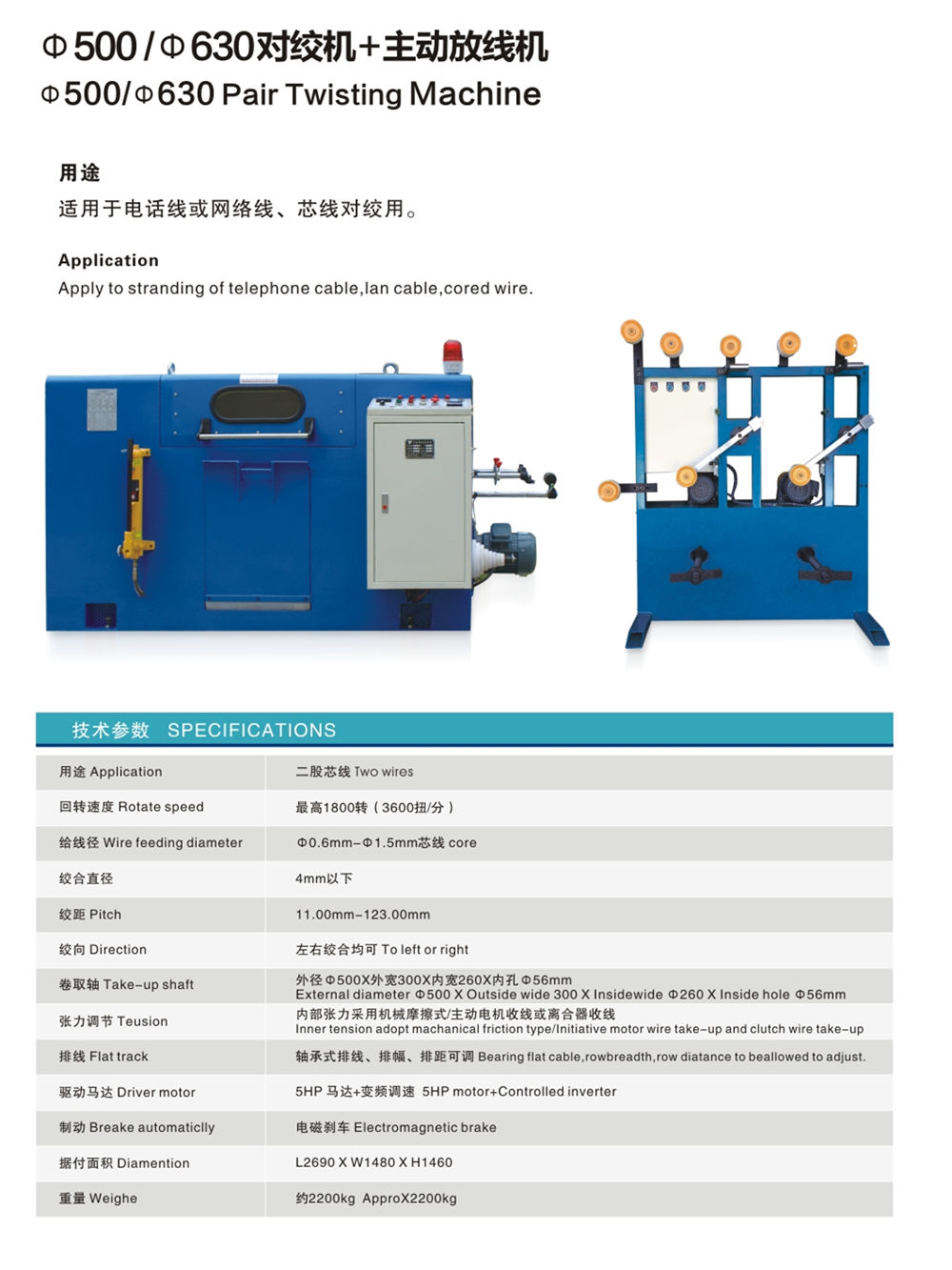 Φ500/Φ630對絞機+主動放線機